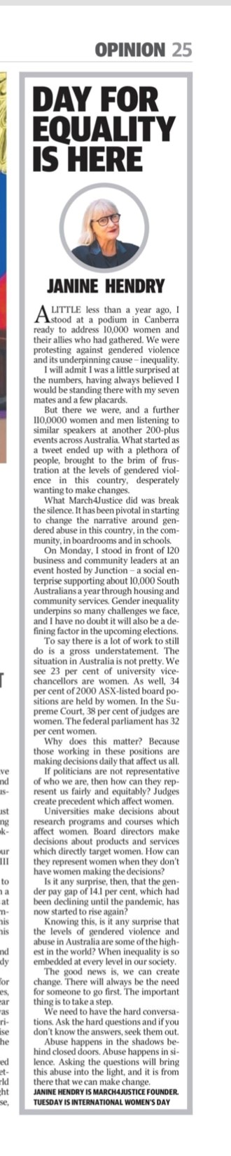 Janine Hendry,  founder of the inaugural March4Justice was our guest speaker. Read her column in the Advertiser below: